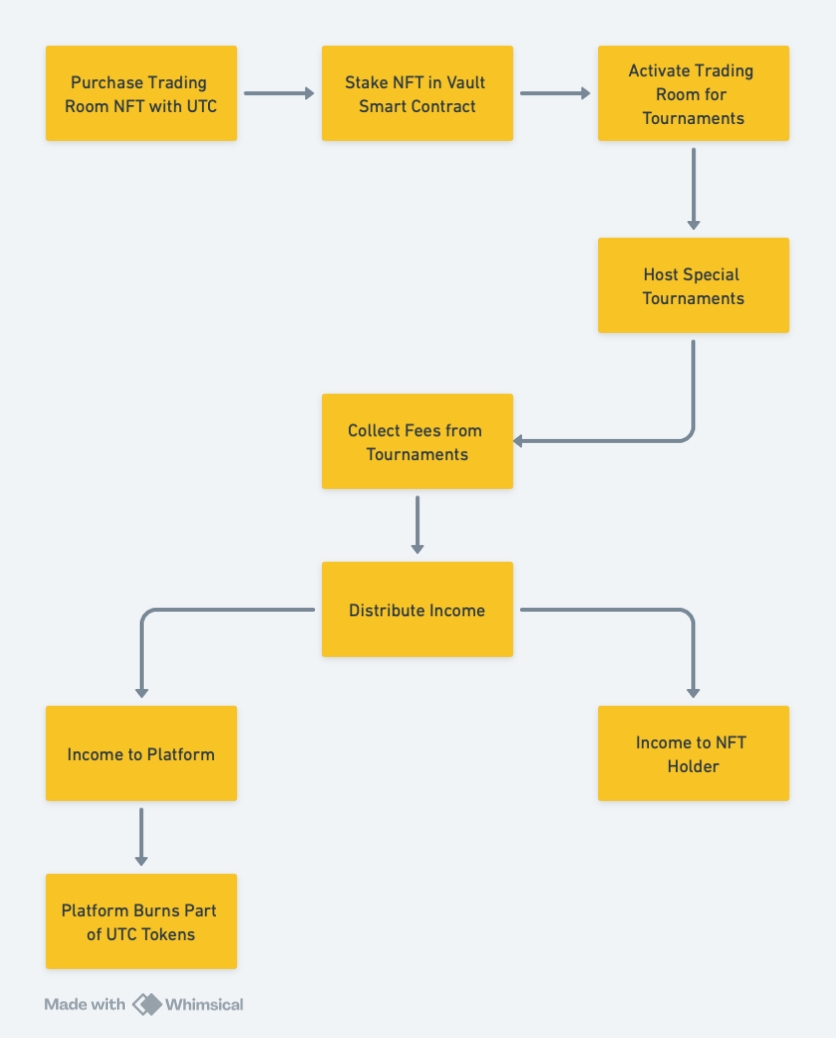 NFT Acquisition: Users purchase NFTs representing trading rooms using UTC tokens.